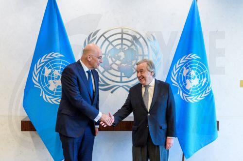 Ο κ. Δένδιας συναντήθηκε με τον Γενικό Γραμματέα των Ηνωμένων Εθνών Αντόνιο Γκουτέρες στον ΟΗΕ το μεσημέρι της Πέμπτης για την ανακοίνωση της υποψηφιότητας της Ελλάδας για το Συμβούλιο Ασφαλείας των Ηνωμένων Εθνών για την περίοδο 2025-26.