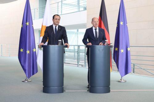 Αναφερόμενος στην πρόσφατη επίσκεψη του Προέδρου της Δημοκρατίας, Νίκου Χριστοδουλίδη, στη γερμανική πρωτεύουσα, είπε πως «το Κυπριακό είναι ένα θέμα. Την περασμένη εβδομάδα ήταν εδώ ο Κύπριος Πρόεδρος Νίκος Χριστοδουλίδης και αποτέλεσε ένα από τα θέματα που συζητήθηκαν. Υπάρχουν ασφαλώς πολλά διμερή θέματα μεταξύ της Ελλάδας και της Τουρκίας, τα οποία προσπαθούμε να προωθήσουμε εποικοδομητικά».
