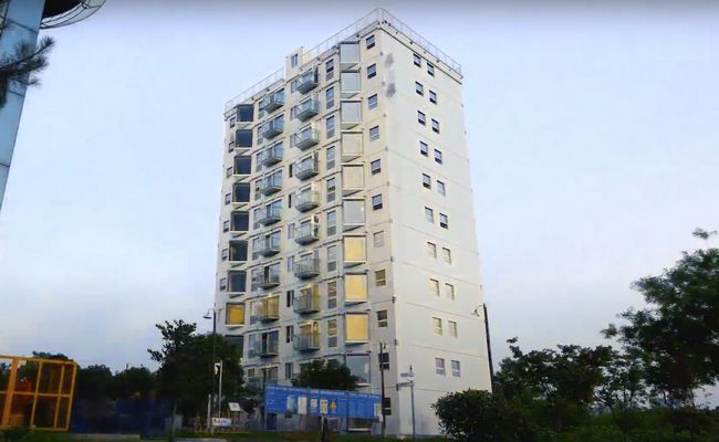 Η αξιοσημείωτη ταχύτητα αποδίδεται στη χρήση προκατασκευασμένων αρθρωτών μονάδων, οι οποίες κατασκευάζονται σε εργοστάσιο και στη συνέχεια συναρμολογούνται επί τόπου.