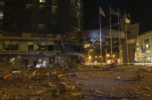 Τοπικά τηλεοπτικά δίκτυα μετέδωσαν εικόνες από το Kharkiv Palace Hotel στο κέντρο της πόλης που έχει υποστεί ζημίες.