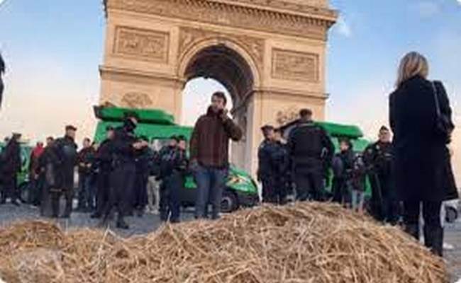 Οι αγρότες έφθασαν με τρακτέρ κάτω απ’ αυτό το μνημείο για τους στρατιώτες που έπεσαν στη μάχη στη διάσημη λεωφόρο των Ηλυσίων Πεδίων γύρω στις 06:00 (τοπική ώρα, 07:00 ώρα Κύπρου) και διέκοψαν για λίγο την κυκλοφορία, διευκρίνισε η αστυνομία.